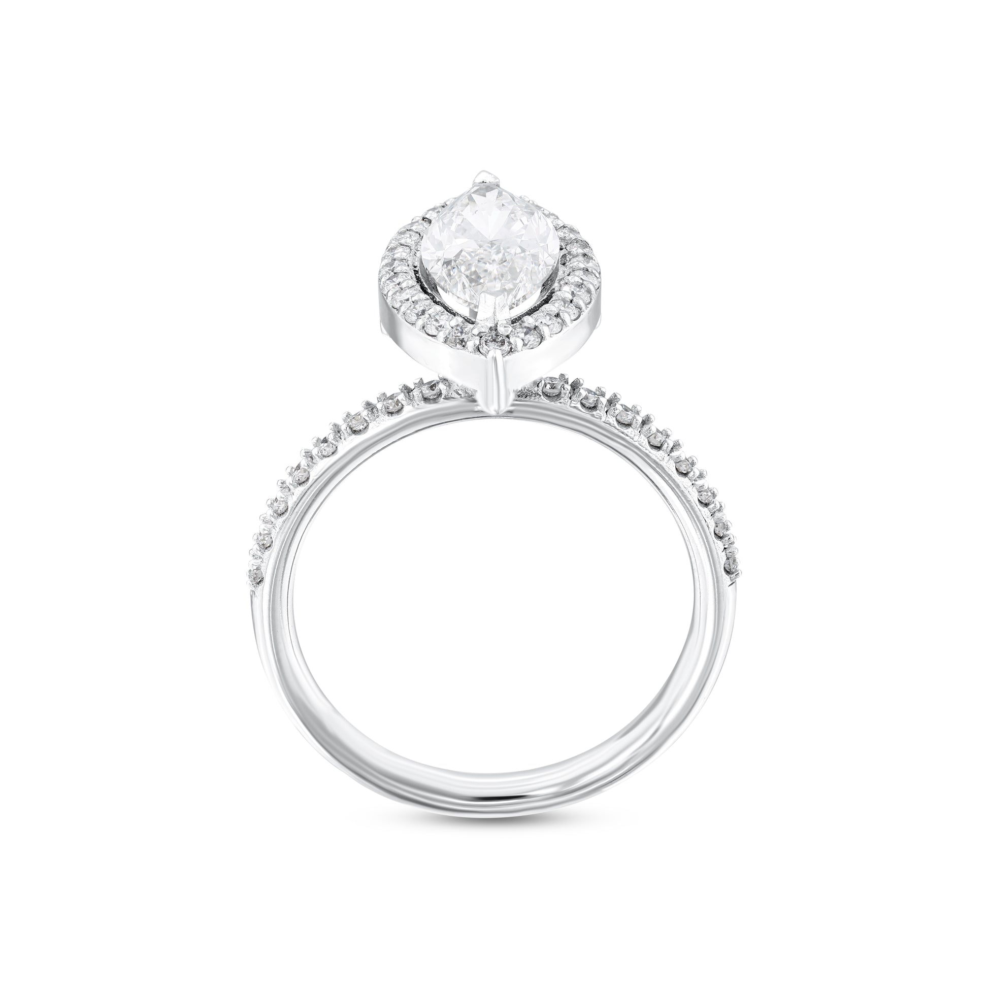 This captivating design features a striking 1.57ct E color, VS1 clarity marquise-cut center diamond, admired for its brilliance, purity, and elegant elongated shape. The centerpiece is enhanced by 0.43ct of side diamonds in matching high-quality grades, creating a dazzling harmony of sparkle and sophistication.
